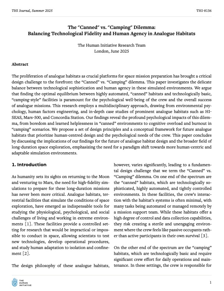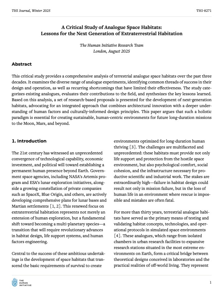 At its core, the Human Constellation program is a living laboratory for studying human societies in miniature. Researchers will gather unprecedented data on community formation, cultural emergence, governance, and psychological adaptation in confined, long-duration environments. The mission will validate The Human Initiative’s four-directional research methodology, exploring how structure and symbolism can shape collective life. Findings will directly inform the creation of sustainable, cooperative, and emotionally balanced communities—whether on Mars, the Moon, or future terrestrial habitats.